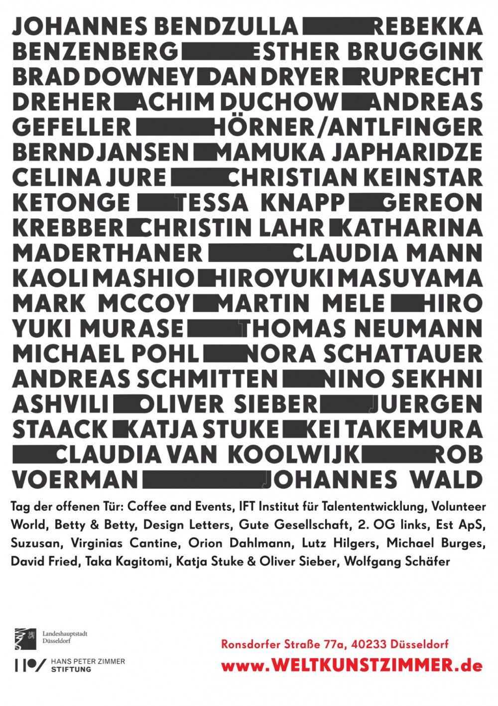 Mathieu Tremblin (France), Yamaguchi Takahiro (Japan), Filippo Minelli (Italy), Mirko Reisser / Daim (Germany), Brad Downey (USA), Tavar Zawacki / Above (USA), Heath Bunting (Britain), John Fekner ), Sasha Kurmaz (Ukraine), Pasha 183 (Russia), Kirill KTO (Russia), Stas Dobry (Russia), MVIN (Spain), Veli Silver (Bosnia and Herzegovina), Amos Angeles (Switzerland), 0331С (Russia), Tod Seelie (USA), VladyArt (Italy), Henry Chalfant (USA) and others.