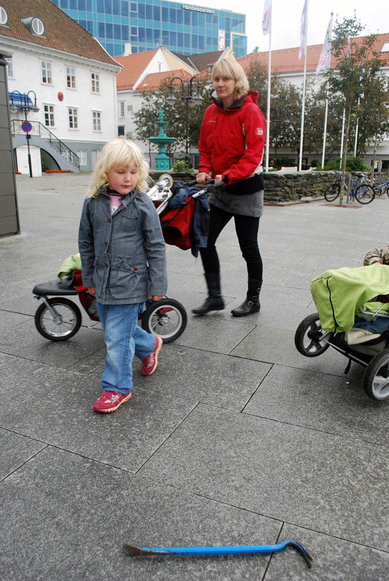 Downey walks the streets of Stavanger provocatively. When someone (a policeman?) axes him what he is doing he drops crowbar, then runs.