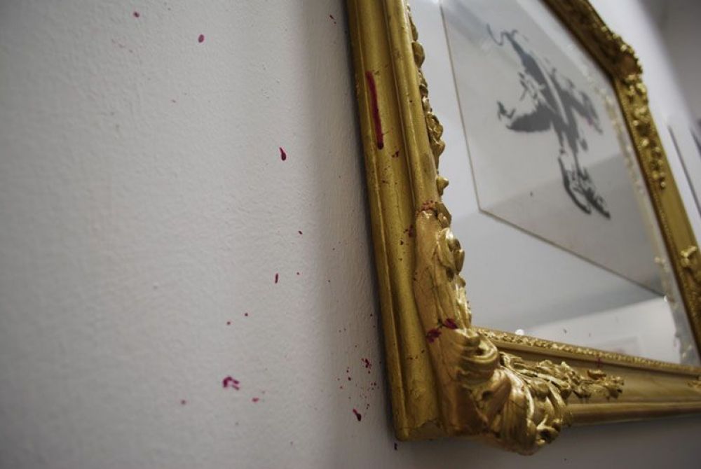 The hardest part of realizing this installation, was convincing the collector to let me explode paint onto to his art collection.