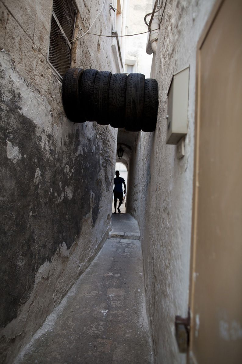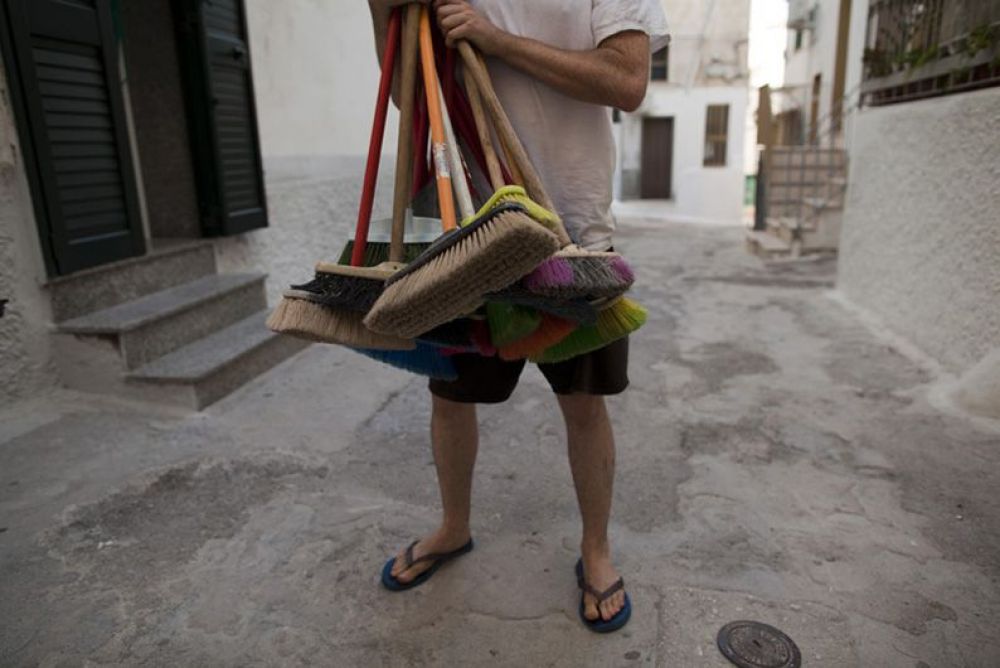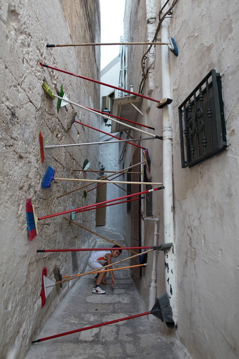 Material: brooms, boxes, tires