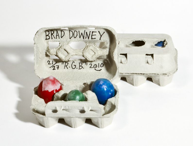 The edition is encouraging people to throw the color bombs outside. All three eggs should be used. They can be thrown at different locations. The collector should photograph and print an image of the egg splats and recontact the artist to be re-signed.