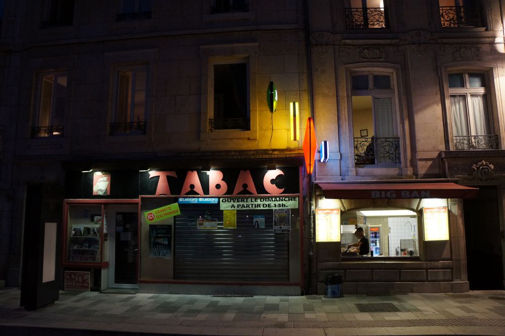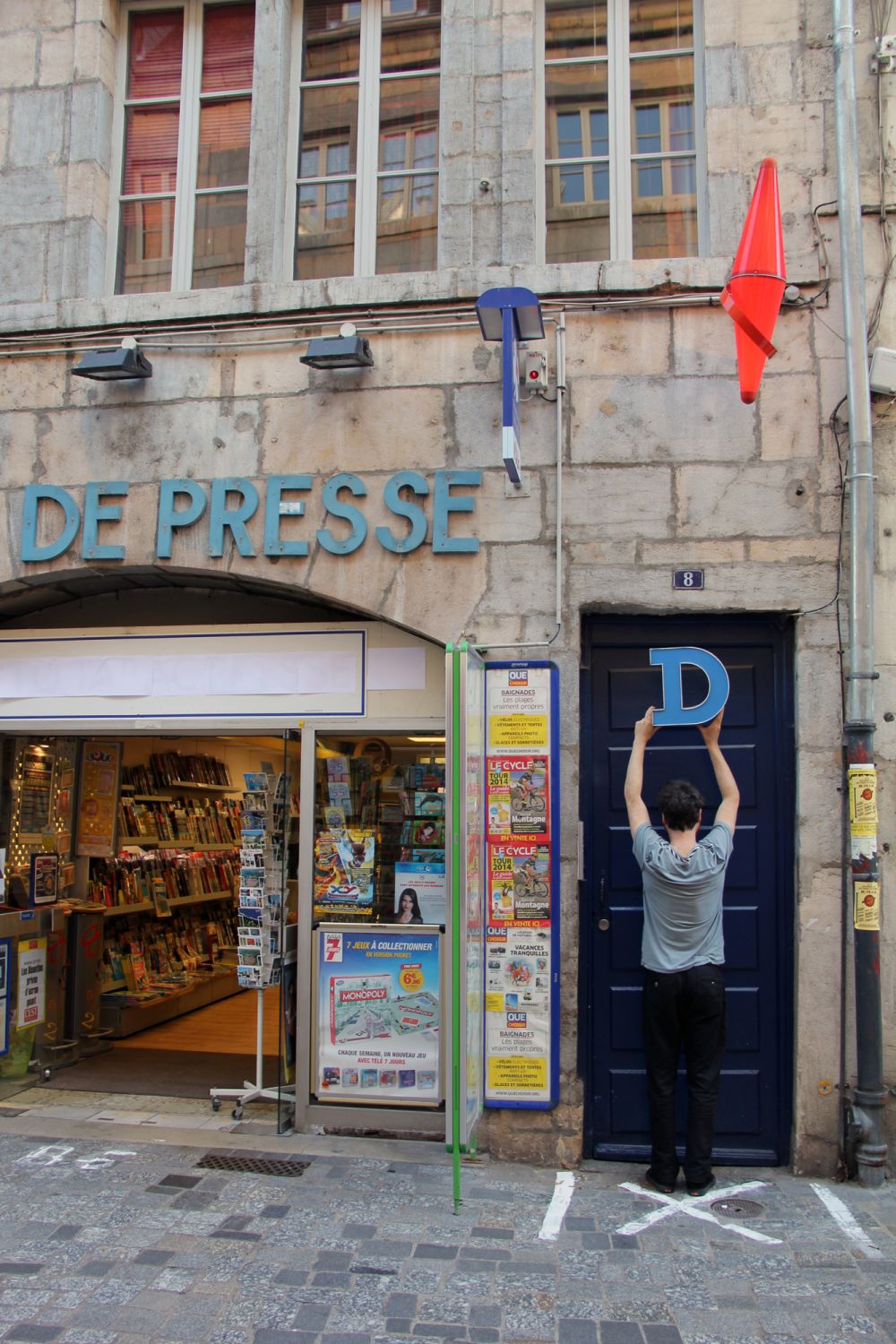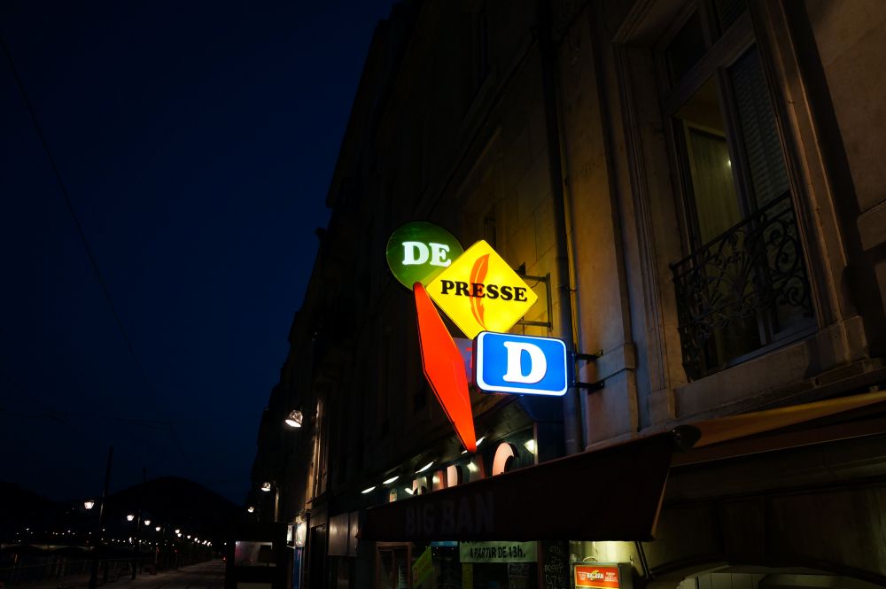 Two new signs are installed and integrated with the existing "Presse" advertising to create a new message for a shop in France.
