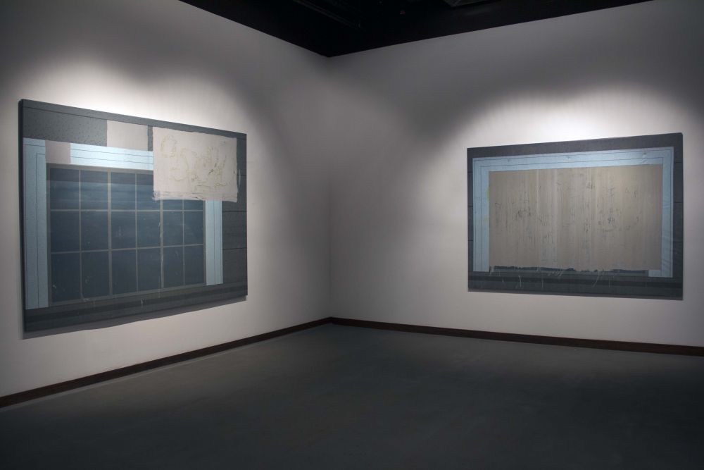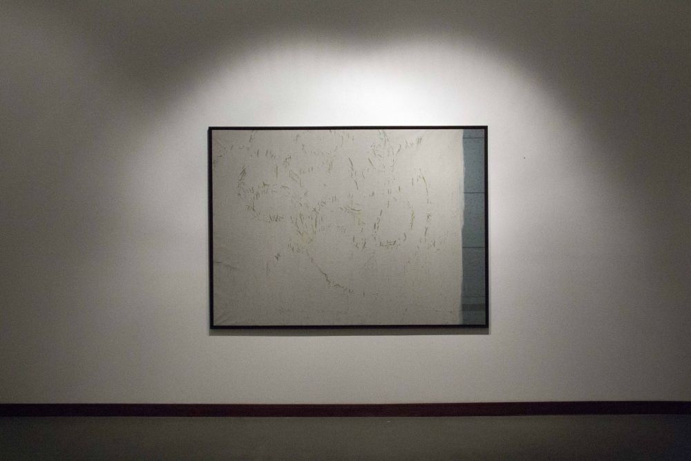 While exploring the avenues, Downey came across several advertorial banners that had been battered by weather, targeted by local graffiti artists, then scrubbed with a bucketful of bleach by a sanitation worker until they had muddled into a clouded grey and green palette. It was a battle of aesthetic censorship between advertiser, artist, and cleaner, each believing with some degree of self righteousness that his curated version of the banner’s appearance held more value than all others. Brad Downey is a confirmed kleptomaniac. He stole the banners, stretched them like canvases, then signed them. Here is how Brad Downey explains his role in creation: “These are the facts of what I did: I touched this work a lot. I cut it, I carried it, I stole it, I took a risk for it, I rolled it up and brought it to Berlin. I opened it up. I looked at it in my studio a lot. I thought about it, I painted on it and photographed it. Maybe I lied about everything and I actually bought the banner, or did the graffiti, maybe I was also the buffer.”