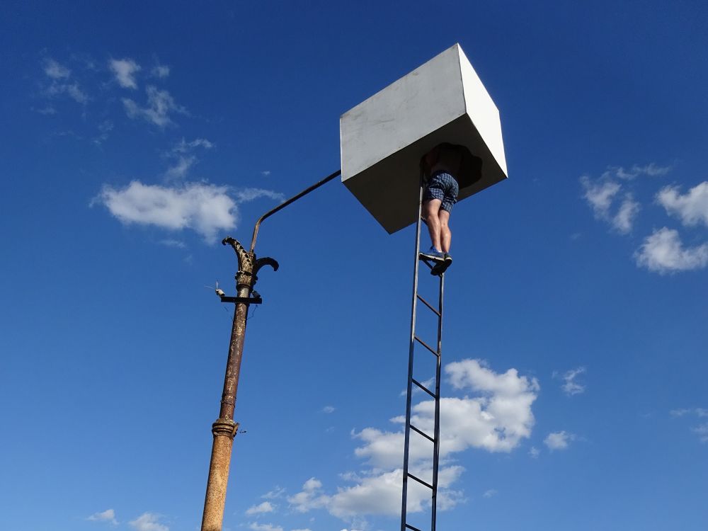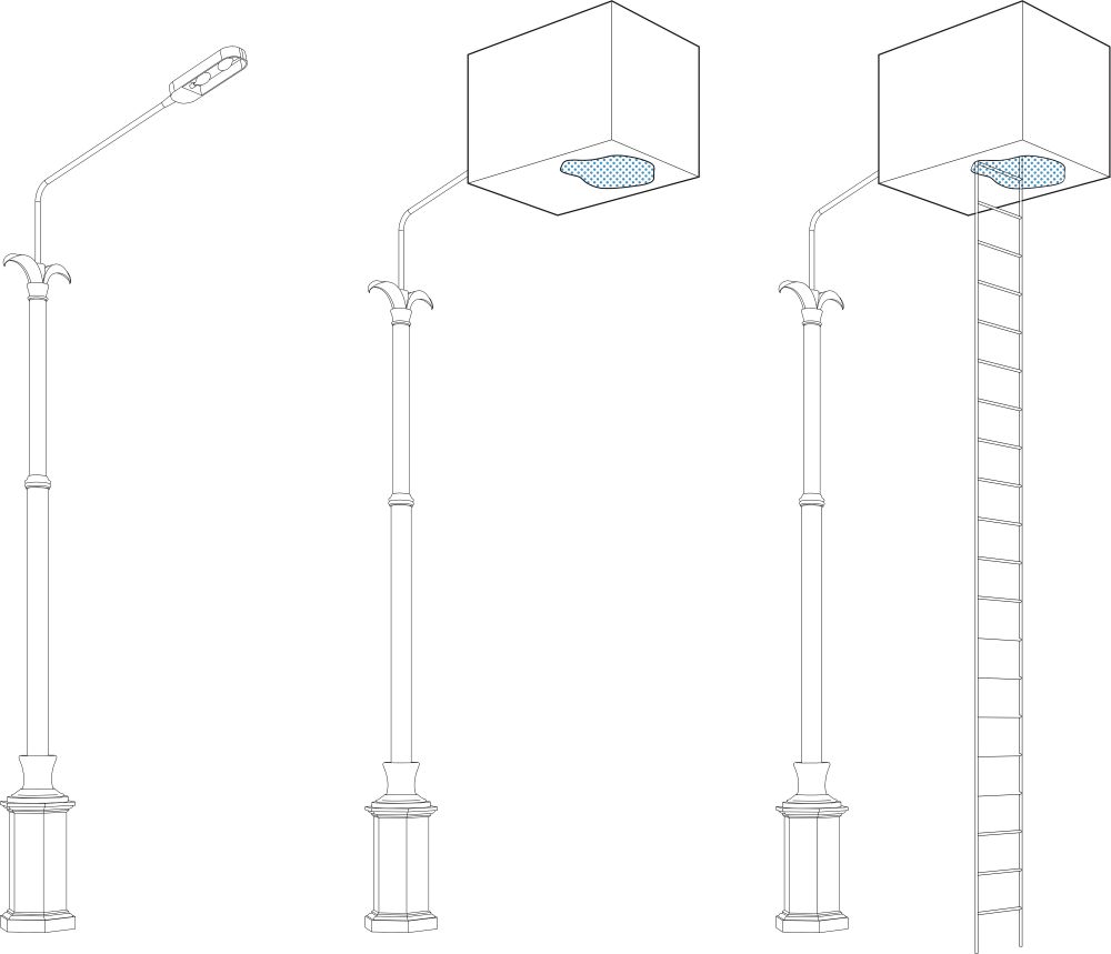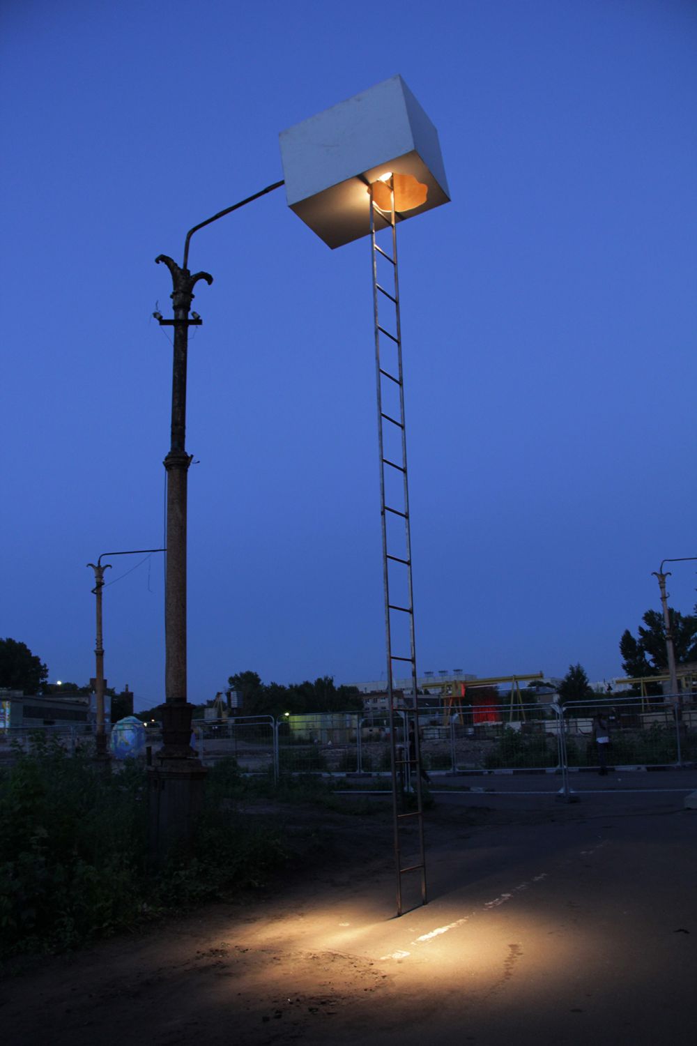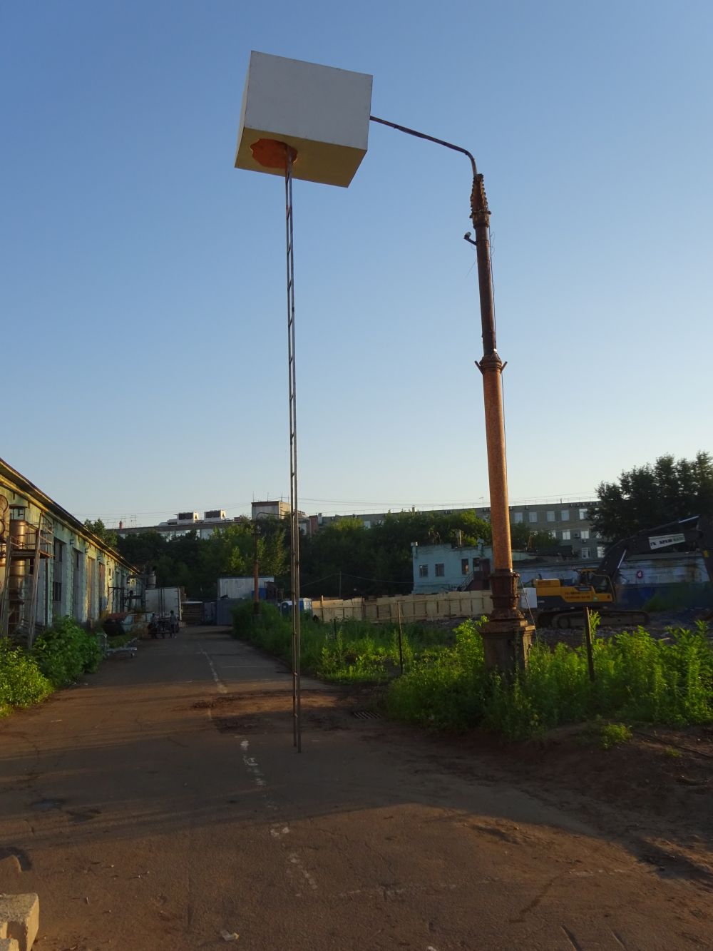Material: operational cast iron street lamp (soviet era), wood, steel, mounting hardware