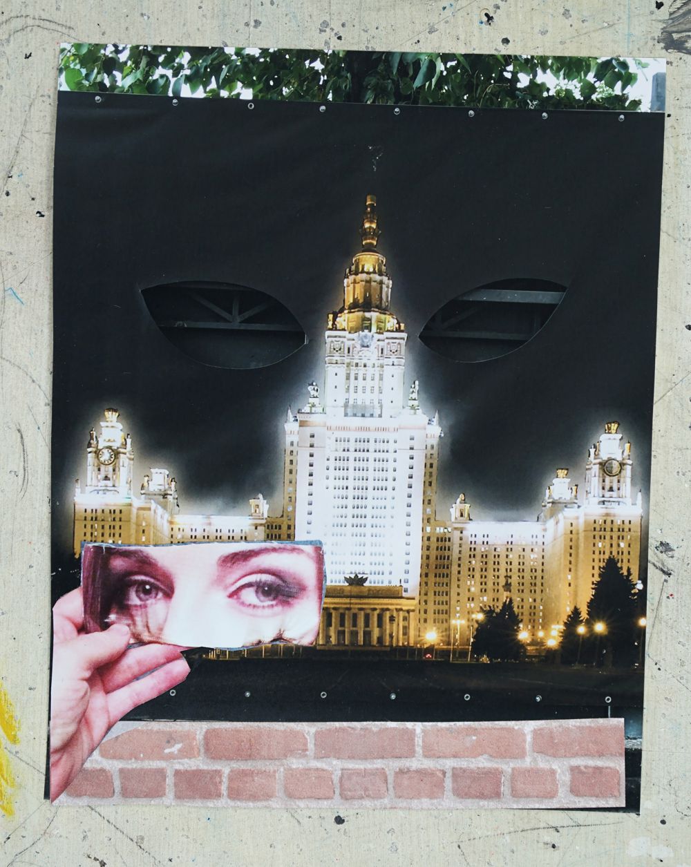 Walking around Moscow for eight days making photographs and creating collages. The small artworks are given to Alexander Petrelli.